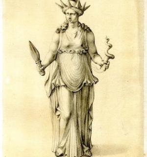A triangle-shaped open air sanctuary is located just outside the southwest corner of the Agora in Athens. Its position at a crossroad and the triangular shape of its enclosure, the building is indicated to be a shrine of Hekate.