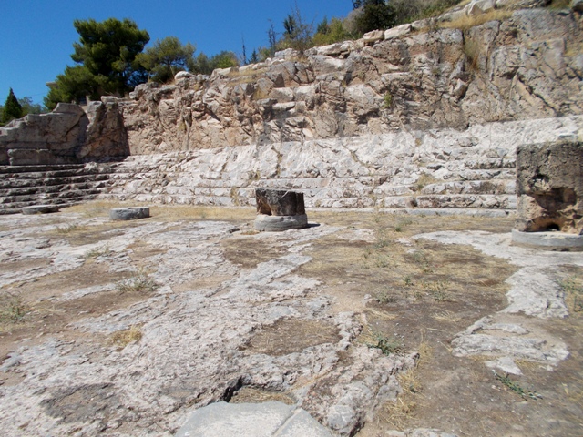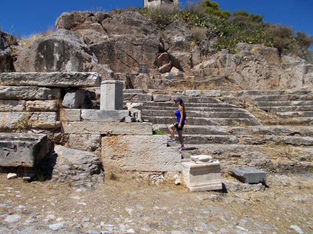 After Plutomium we see another exedra, a place in which honorary members sat and watched the pomp. South of exedra, there are stairs made by porolithos and other are sculptured in the rock. They lead to a small temple of Hekate. Hekate was leading with her torches the followers to telesterion, to learn the Mysteries. Moreover Hekate is the Goddess who helped Demeter find her daughter and she is the one who heard the abduction. Hekate and Persephone became close friends and Hekate lead Demeter to Helios. The power she has in Hades, let her lead Persephone to earth, when the deal with the Olympian Gods and Demeter was made. Maybe the temple of Artemis close to larger propylaia, was a temple to Hekate.