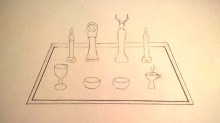 Shrine is a sacred surface/table that is used only for one God or Goddess and it is mainly for devotional work, praying and offerings. For creating a shrine you will firstly need a surface like a table or a bookcase section, where you will add items corresponding to the specific deity. The table could be either put at the center of the room or against the wall of the room, traditionally looking at the east. On the table must be put a depiction of the God or the Goddess. This depiction can be either a statue or a cornice with a printed image of the deity. The printed image version is used when there is not a statue of the God available to buy.